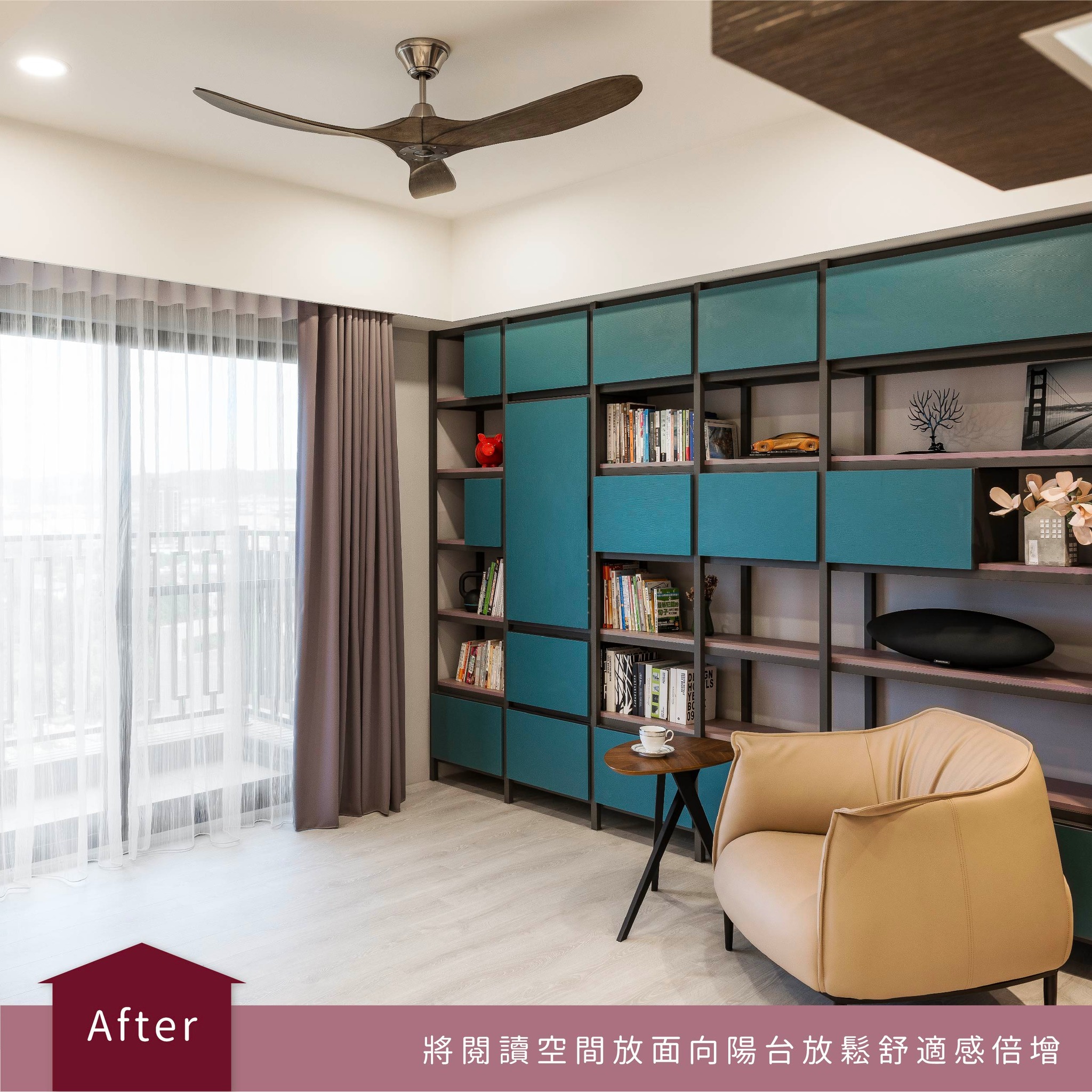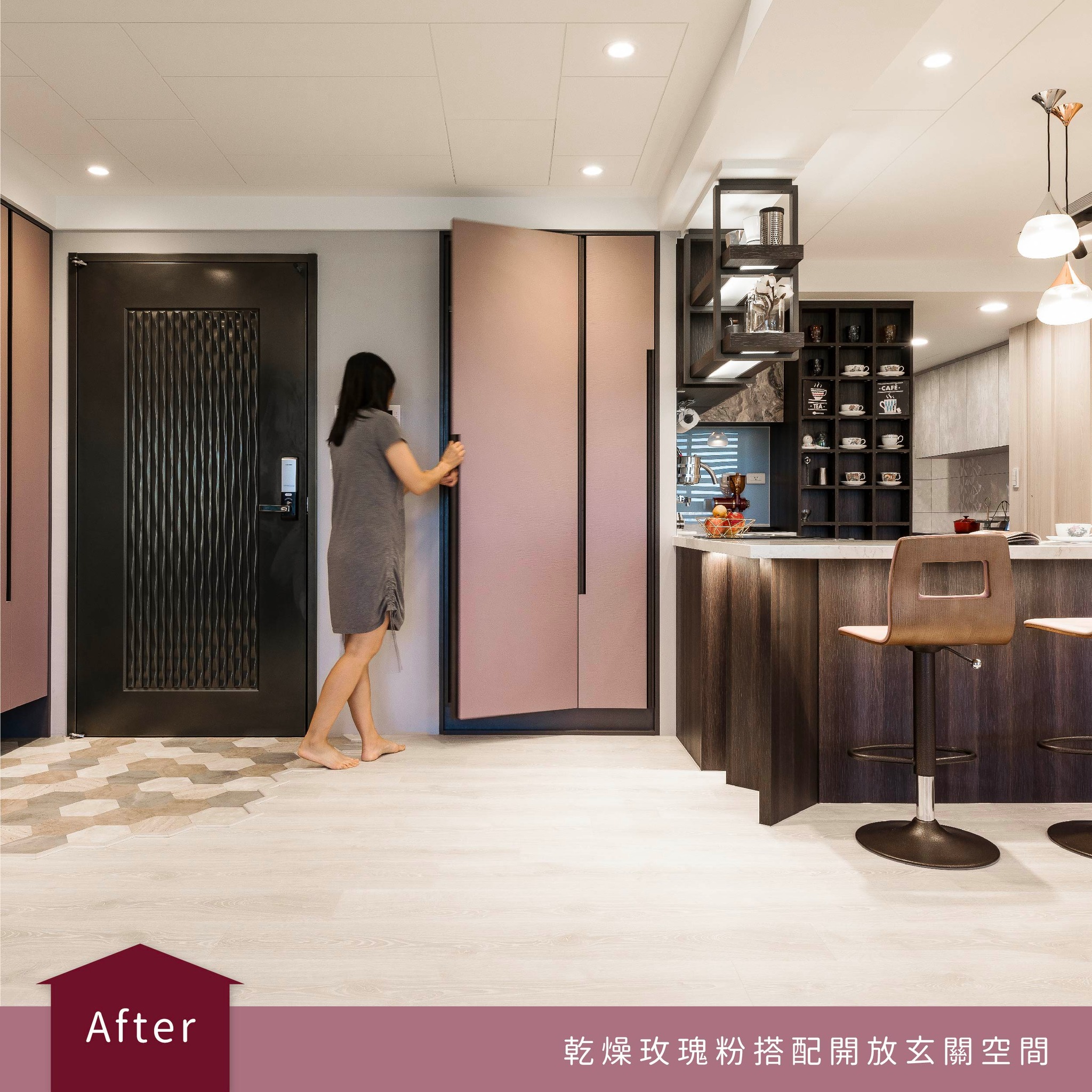 莫蘭迪粉與綠|從玄關延伸閱讀空間 首頁 設計文章 設計前後 莫蘭迪粉與綠|從玄關延伸閱讀空間 傢棻設計現場Before & After 記錄關於傢棻設計的那些小事 #傢棻帶你一探究竟設計現場 莫蘭迪粉與綠|從玄關延伸閱讀空間 在空間不大的狀況下,想要區隔出不同使用情境的空間,可以靠顏色材質來做搭配,使開放式的空間也能擁有專屬自己的空間~在這個空間案例中,希望能擁有通透舒適的閱讀空間又能保持光線在空間流動,因此從玄關延伸不做隔間直接延伸出閱讀的空間,用莫蘭迪粉與綠來做空間轉換與區隔,整體散發著溫柔與自然的氣息,粉色的柔美和綠色的沉穩相互平衡,讓空間不僅充滿親和力,還能提升專注力和舒適度。