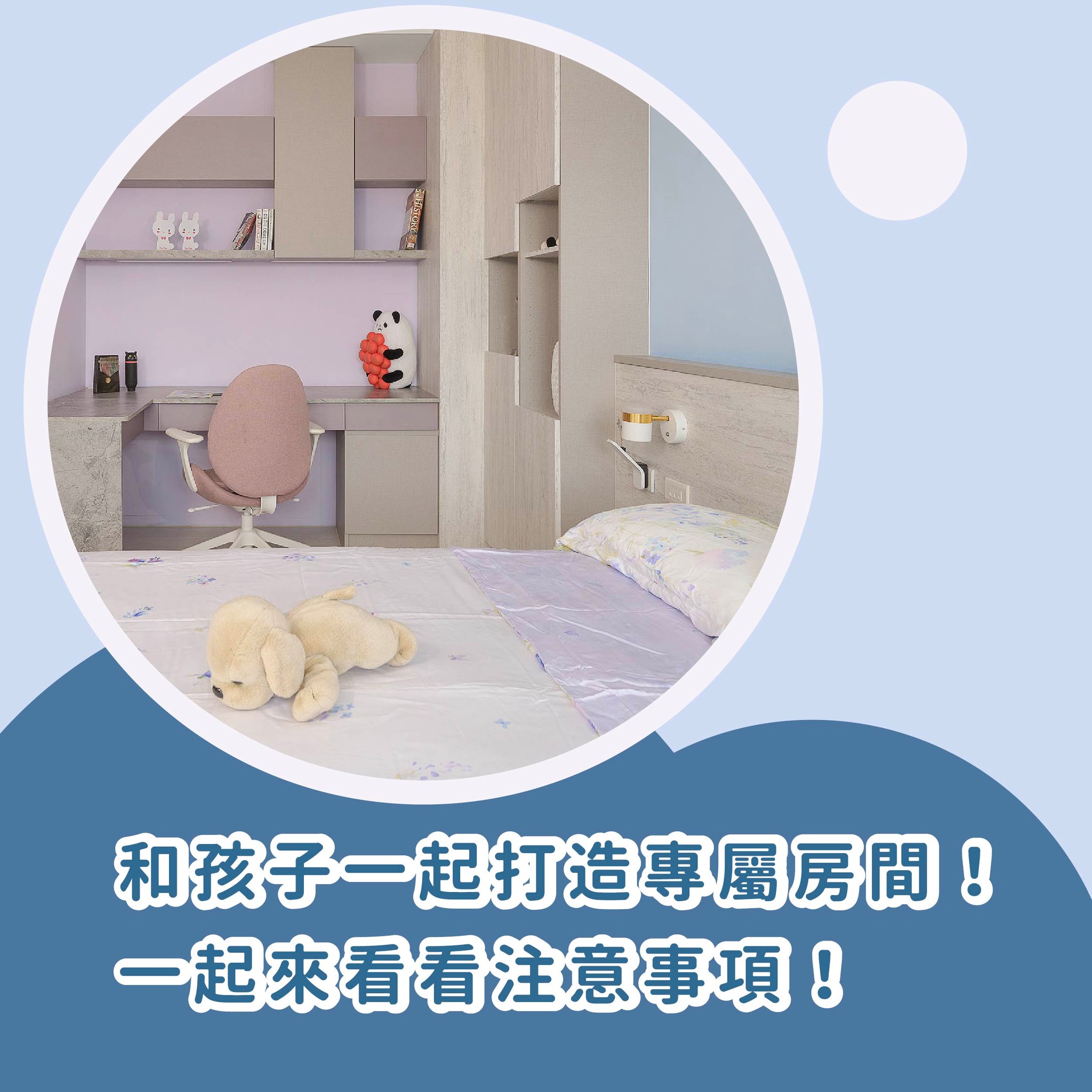 小孩房間設計小秘訣 首頁 設計文章 關於空間 小孩房間設計小秘訣 每個孩子的小心願 打造夢想中屬於自己的小天地! #傢棻室內設計小秘訣 小時候是不是常常幻想自己有一個房間,且舒適又漂亮! 小編小時候看到很漂亮的房間都會好羨慕喔~~ 如果正要進行室內裝潢的家庭,也記得要把兒童房設計一起納入預算~ 給孩子一個專屬於他們的空間吧! 說到兒童房設計又有哪些我們可以先知道的秘訣呢~ 看這篇就對拉!設計前先大概了解重點比較好去執行! 如果還有任何有關兒童房設計的問題也歡迎私訊我們呦~~