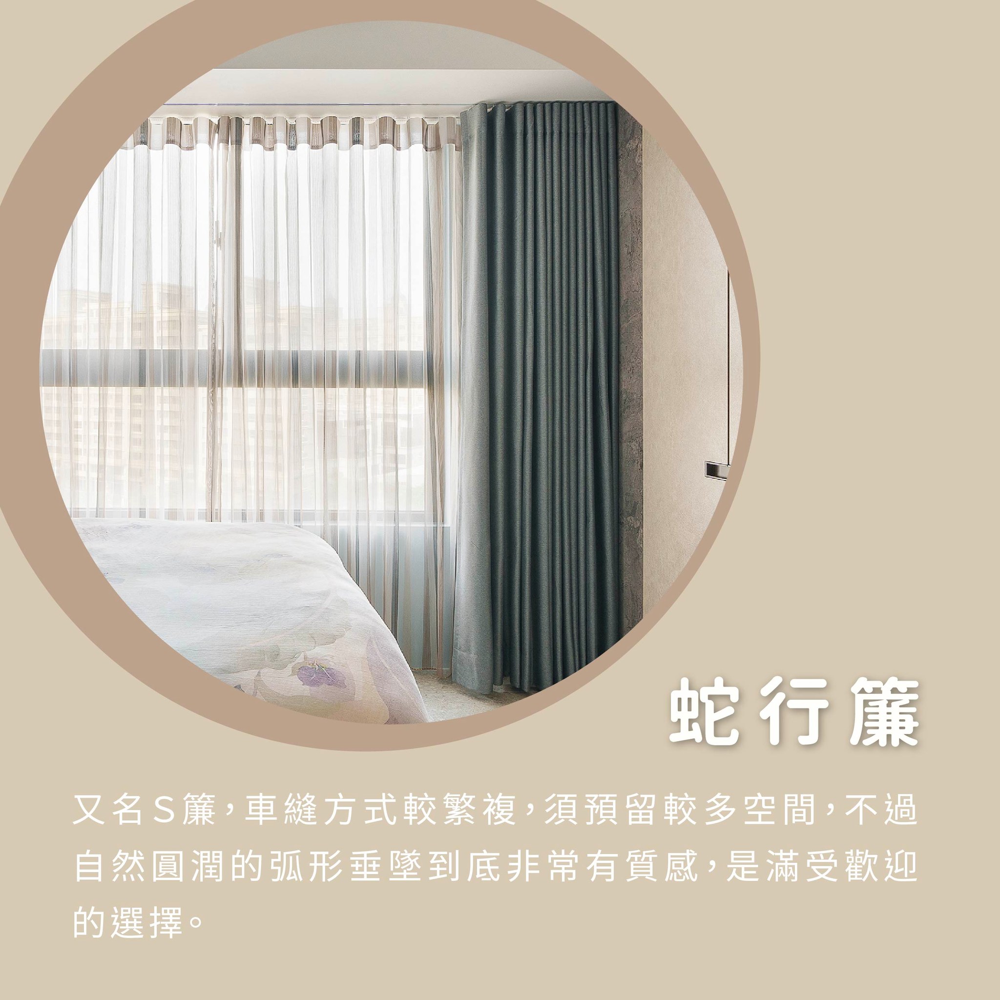 又名S簾,車縫方式較繁複,須預留較多空間,不過自然圓潤的弧形垂墜到底非常有質感,是滿受歡迎的選擇。