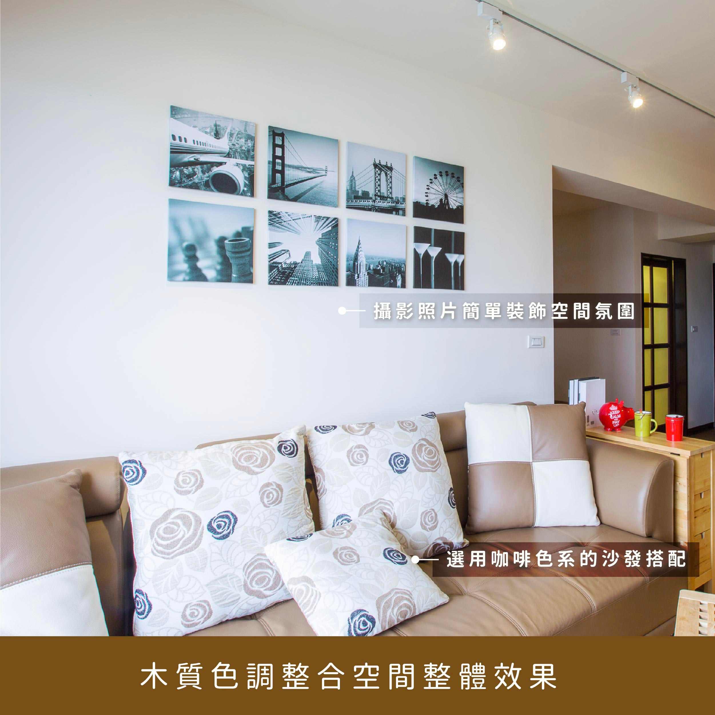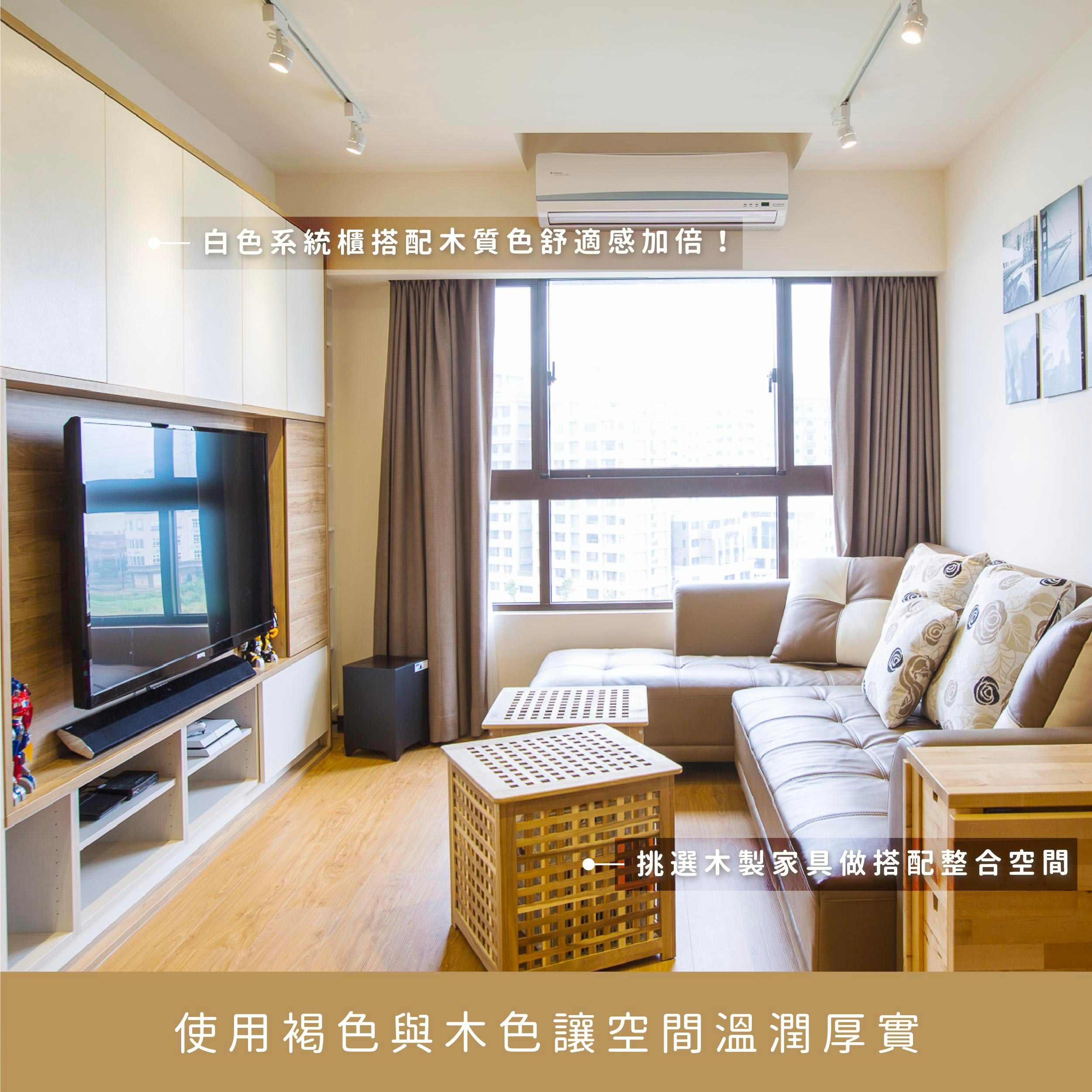 在客廳空間上如果喜歡自然舒適放鬆的氛圍,也可以考慮將褐色系木頭質感加入空間設計作為主要元素呦~~透過木質色系與白色做搭配整體空間溫潤又厚實給人放鬆又安心的感覺,再搭配相同色系或木材質的軟裝讓空間呈現一致感,且讓空間層次更加豐富而不會過於單調,喜歡木質自然感的空間也能這樣搭配看看呦!