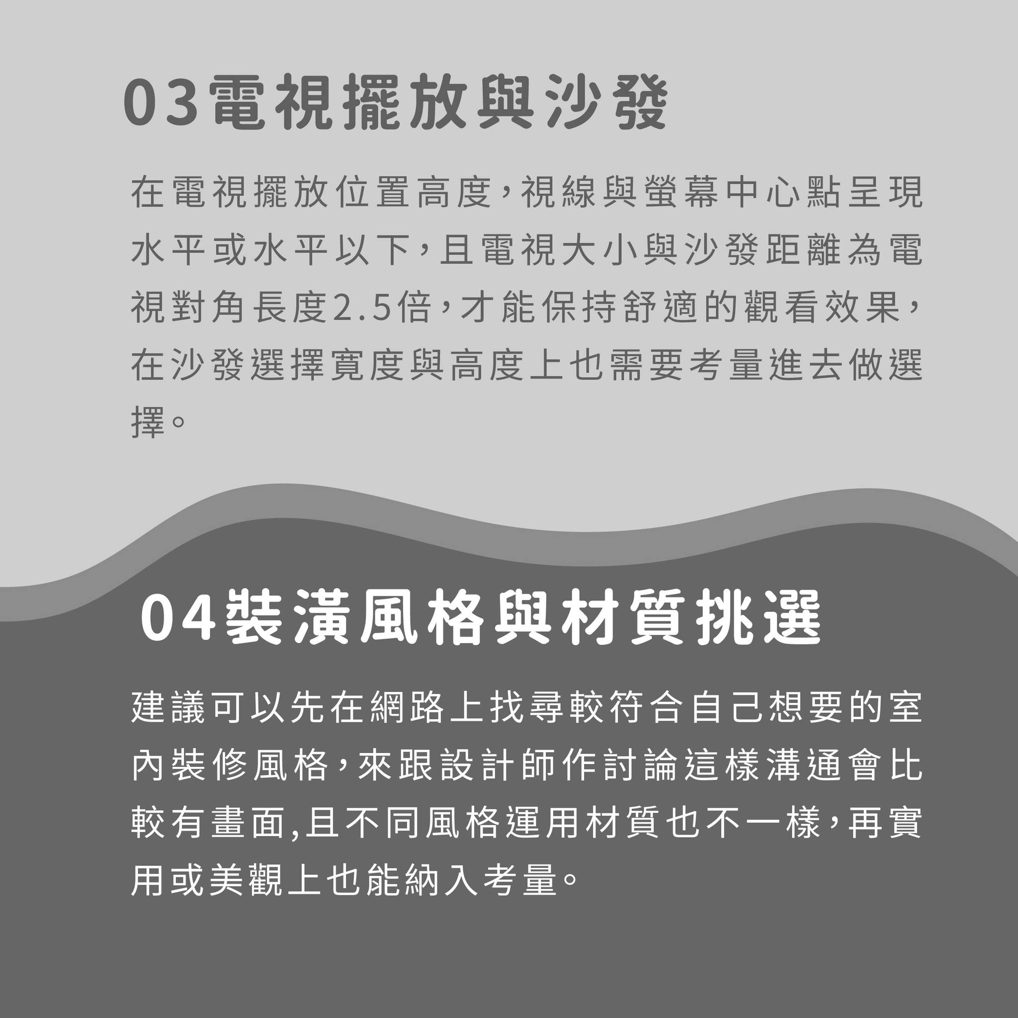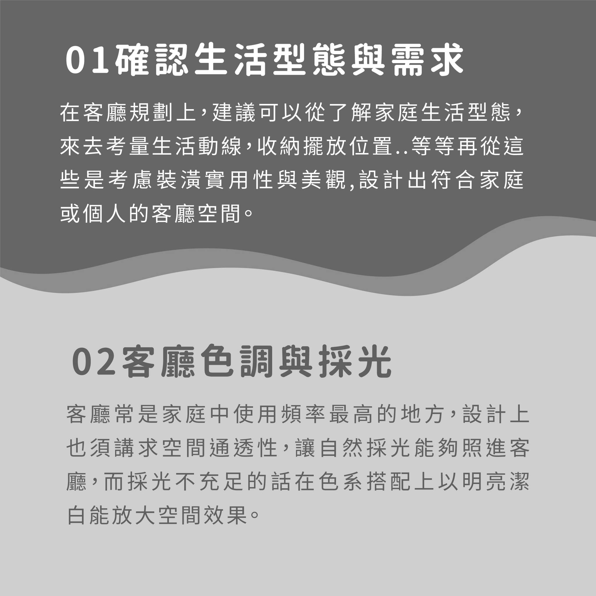 客廳設計重點大集合! 首頁 設計文章 關於空間 客廳設計重點大集合! 客廳設計重點大集合! 一個家的中心從客廳開始~ #傢棻室內設計小知識 最近剛好和業主在做客廳規劃,感覺可以出一個客廳設計重點整理 讓大家更有方向去進行設計,也希望能夠讓大家擁有實用又美觀的客廳拉~ 其實對於客廳設計每個人都有不同的需求與想像,建議大家可以先讀完這篇重點整理,上網找尋喜歡的設計風格,再與設計師討論這樣能夠加速溝通效果~~ 如果你還有關任何在客廳設計的問題!都歡迎私訊我們或在下方留言~ 傢棻設計團隊都會很熱情的回答您~